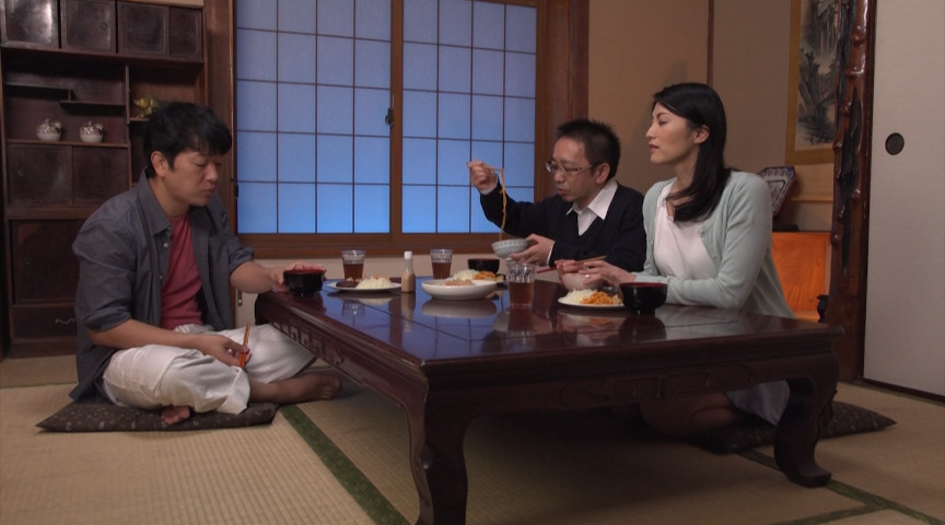 義父とその知り合いの男から耳や首筋をジットリ舐められると、身悶えしながらチンポを触ろうとする不貞妻。ご奉仕するように命じられて男の全身を舐め回し、自ら舌を出してスケベな音を出しながら吸い合い、ローターと電マで勃起した乳首とクリを責められ失禁する。そそり勃った二本のチンポを嬉しそうに交互に舐め、自らマンホジしながらディープスロートし、熱いザーメンを口内に注がれると、舌上で転がすようにザーメンの感触を愉しむ背徳妻。パイパンを開いて見せるように命令されると透明な本気汁が糸を引き、まずは男のチンポで蓋をされ肉感を子宮で味わう。義父のチンポをシゴきながら男のチンポを膣で締め上げると、男はまだもったいないとばかりに女の口に愛液まみれのチンポを捻り込む。義父の異常に長いチンポを膣襞で受け止めると、自ら卑猥に腰を振って何度もキスを求めて昇天する。美尻をスパンキングされながら連続で膣奥に種付けされる不貞妻だった。