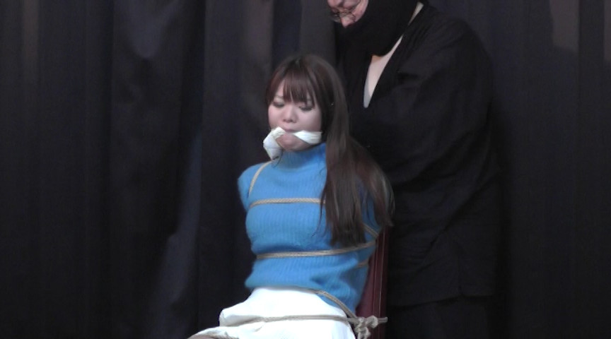 ブレザーの制服を着た女性を緊縛していきます。紺のハイソックスを履いているのが今回のポイントです。黒のハイソックスの足首に括られた縄の醸し出す背徳感。緊縛に抗おうと悶えるハイソックスを履いた足の動きとフレアスカートのはだけ具合、そこからのぞく清純そうな白のパンティは正に芸術と言って良いでしょう。